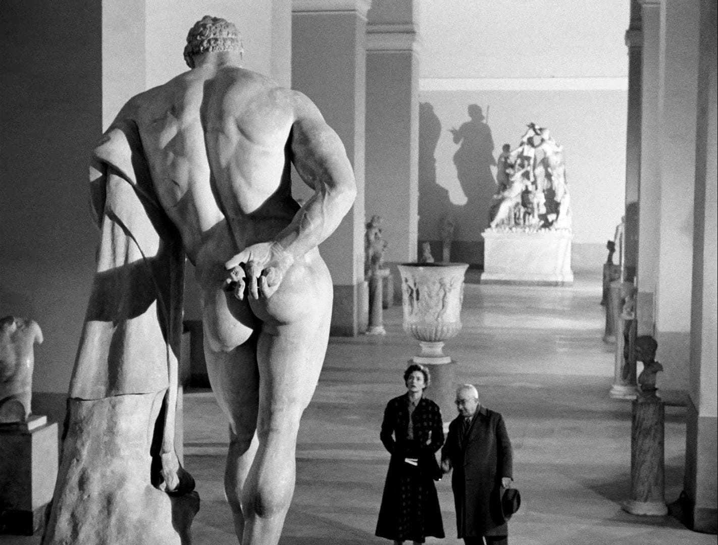 A lot of the most significant action in Journey to Italy are the scenes the couple have separate from each other, from Katherine’s sightseeing tours to Alex’s trip to Capri. What did you think of those scenes, Keith, and what they say about these characters? Rossellini crosscuts so meaningfully between them, no?