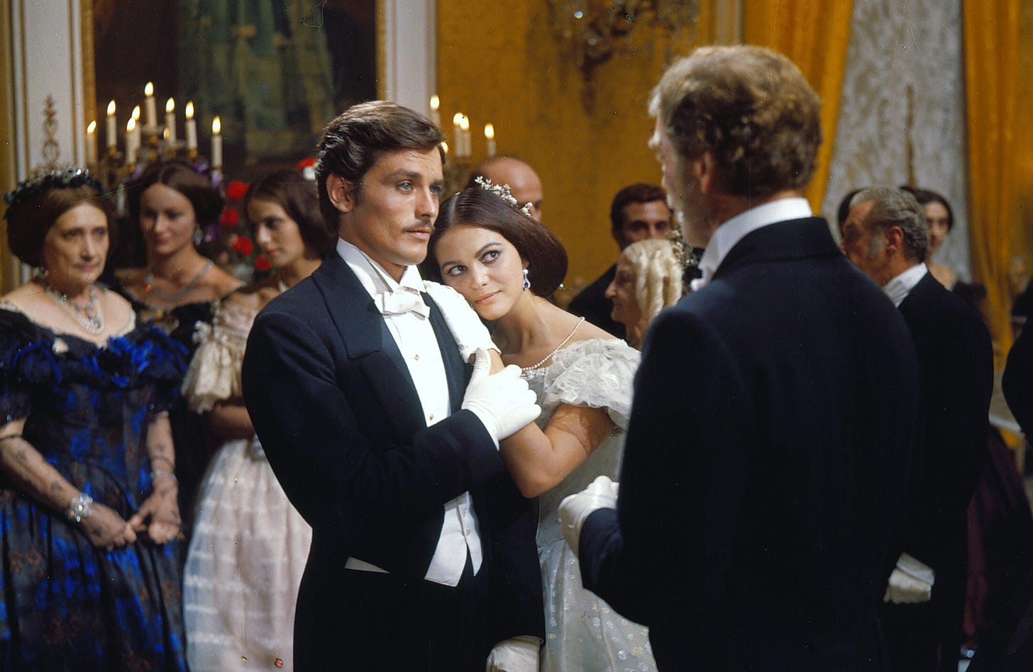 And how about that Alain Delon performance as Tancredi? For one, we should say upfront that the pairing of Delon and Claudia Cardinale is right there with Tony Leung and Maggie Cheung in In the Mood for Love for the Sight & Sound Top 100 most scorching couples in cinema history. But this is Delon in Purple Noon mode, at least insofar as Tancredi shapeshifts to suit his own purposes in much the way Tom Ripley does in that film. Tancredi doesn’t really believe in anything apart from his own wealth and power, and he has both a personality gregarious enough to move in any elite circle and a heartlessness sufficient to betray those he doesn’t need anymore, whether they’re his fellow insurgents or poor, plain Concetta (Lucilla Moriacchi), the woman who loves him. (It’s funny how Cardinale is so otherworldly beautiful that it’s obvious to everyone that Angelica will command the hearts of every man in the room. Visconti cuts to Concetta first.)