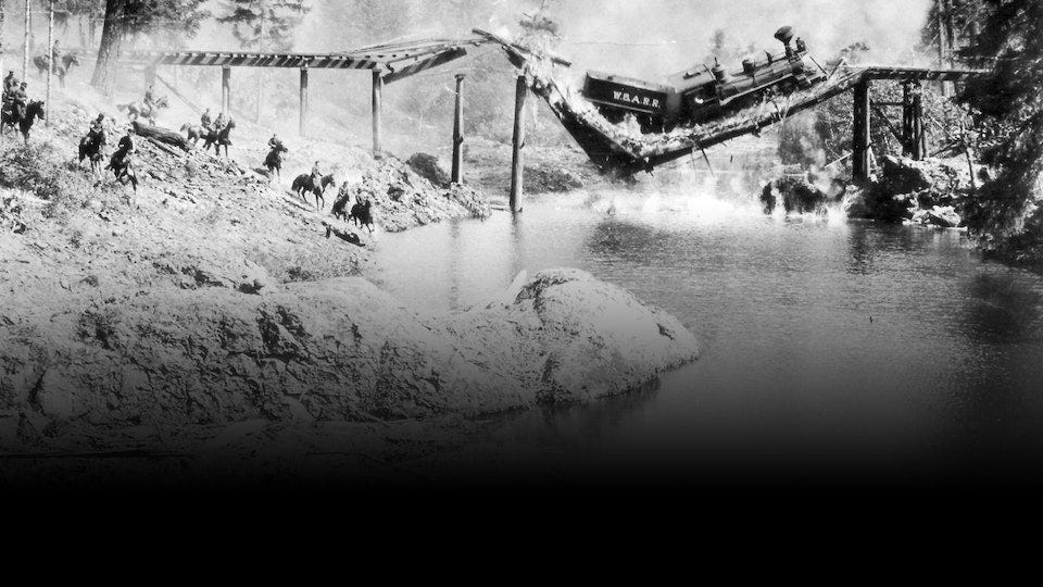 Then there’s the rest. The moment when Johnnie’s train rounds the corner to accidentally fire a cannonball at the enemy’s train at just the right moment always takes my breath away. That’s both because, wow, the technical skill it must have taken to pull it off, but also because it’s such a dramatic reversal of fortune for Johnnie. Up to that moment, nothing has gone his way. Suddenly, it looks like he might have a fighting chance. “Fighting” might be the key word here. It’s a comedy that now looks like a progenitor of the action film. That’s especially evident in the big bridge collapse scene you allude to above. There’s a reason performers like Jackie Chan revere Keaton even beyond the direct line between his stunt work and theirs.