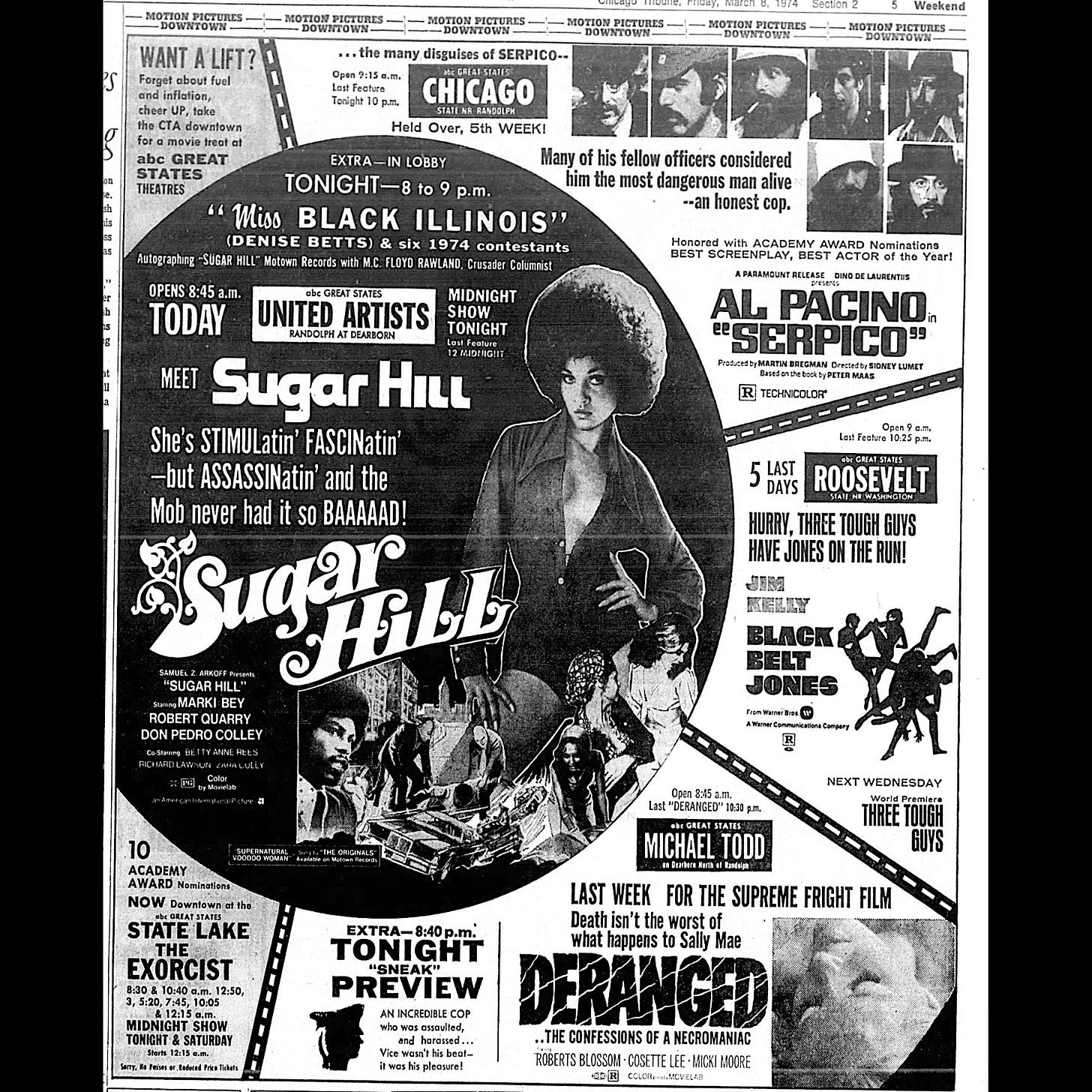 The Instagram account Windy City Ballyhoo, which features a remarkable collection of images from Chicago’s moviegoing past, deserves a tip of the hat for helping inspire this piece. It’s also on the site now called, sigh, X.