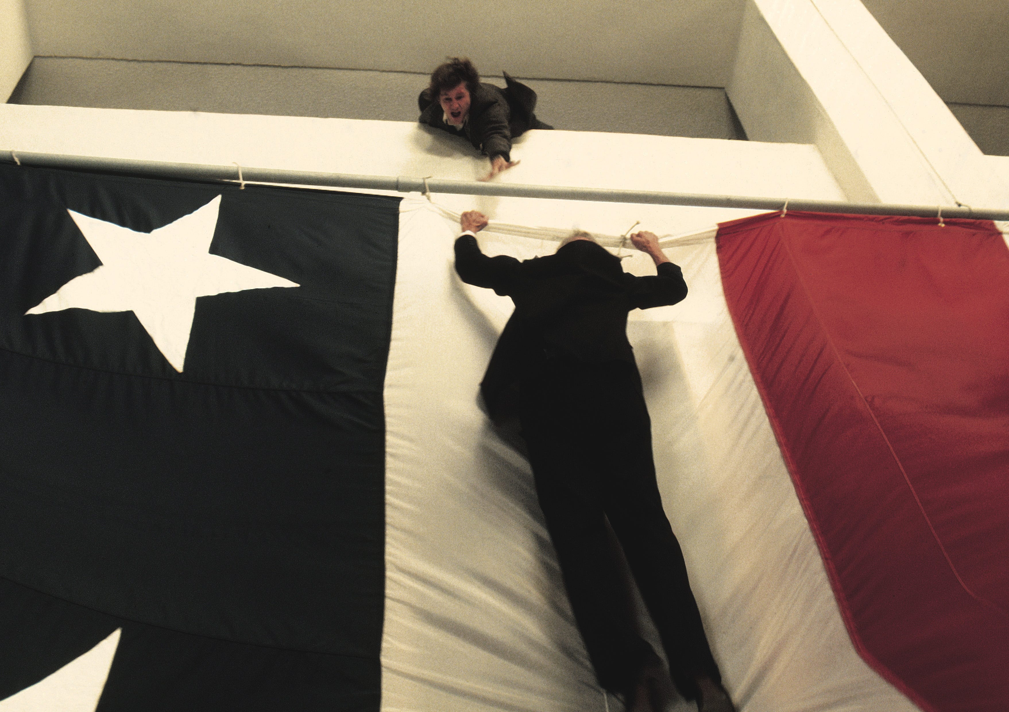 The story of how Winter Kills got made and unmade is every bit as byzantine and ridiculous as the movie itself. Though Condon was not involved in the filmmaking process, he greatly admired the finished result and wrote a gripping behind-the-scenes look at the whole fiasco for Harper’s called “Who Killed Winter Kills?” The gist is that the film’s original producers, Robert Sterling and Leonard Goldberg, had neither the experience nor the funds to take it across the finish line, and that when payments to cast and crew—sometimes delivered in envelopes of cash in a hotel room—dried up, the artists worked for free until union officials found out and shut it down. It took two years and money from multiple studios and individuals, including cast members like Jeff Bridges and John Huston, to complete the film. Even then, the distributor, Embassy Pictures, took control over the final cut. The film tanked at the box office—even that part of the story is flummoxing— and Richert only finished it to his liking in 1983, when he acquired the rights to it again.